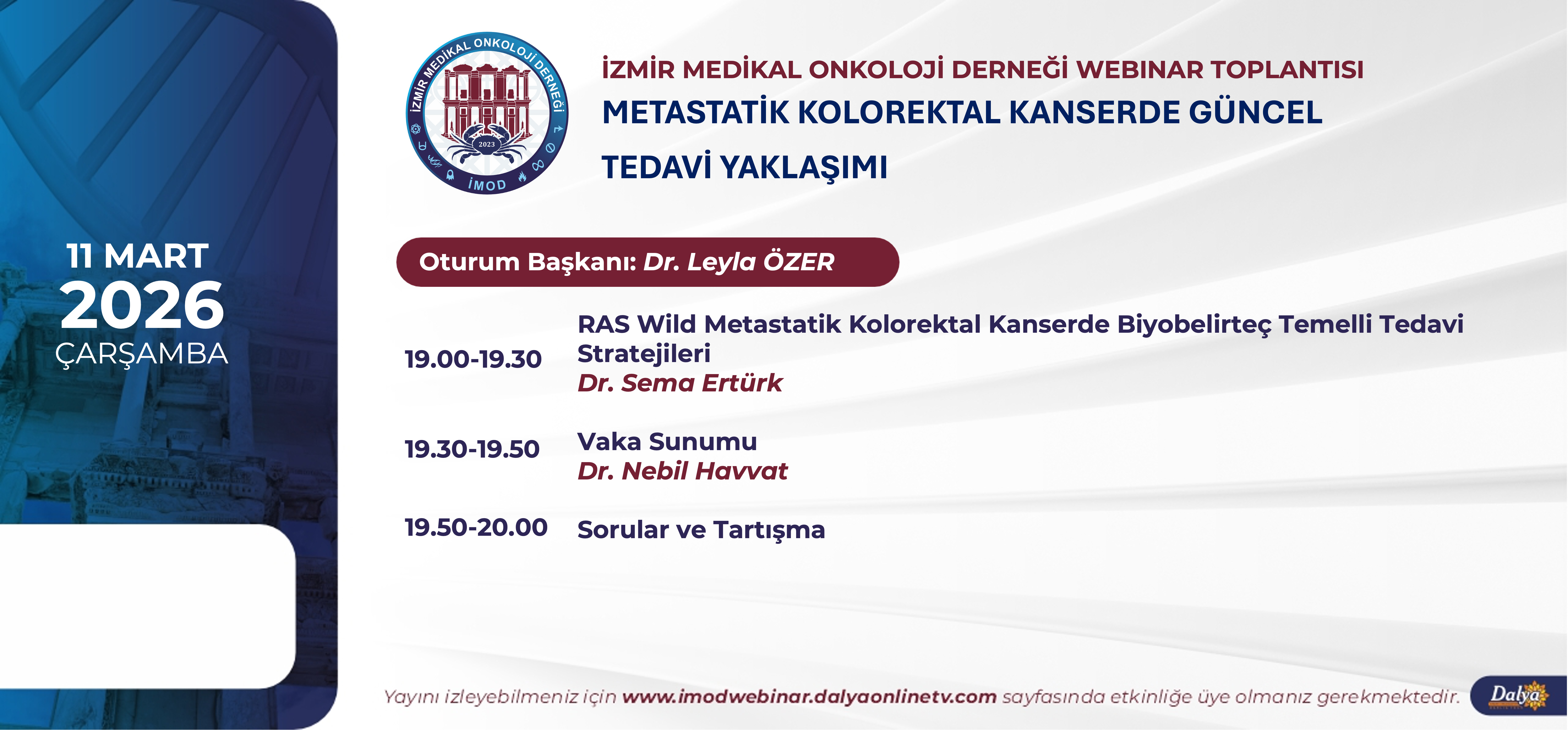 Organizasyon Canlı Yayını 11 Mart 2026 tarihinde saat 19.00 da Başlayacaktır. Tüm katılımcılar canlı yayınımızı imodwebinar.dalyaonlinetv.com “Toplantıya Katıl” sekmesinden ücretsiz olarak izleyebileceklerdir. Yayını izleyebilmek için imodwebinar.dalyaonlinetv.com sayfasından etkinliğe üye olmaları gerekmektedir.